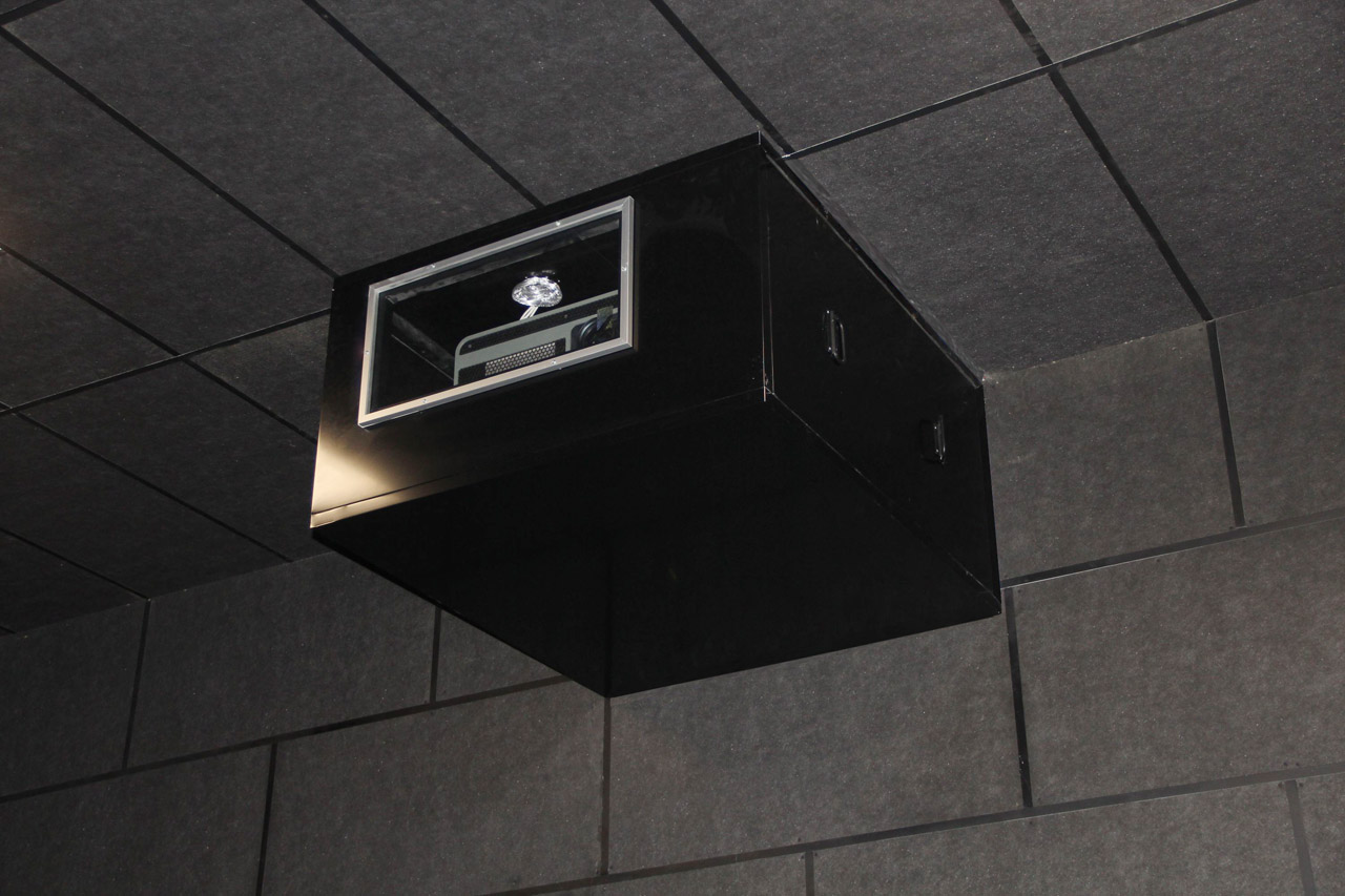 Кинобокс Lumen Pro при необходимости можно размещать за пределами зала, в смежном служебном помещении. При этом не требуется дополнительная звукоизоляция или монтаж специальных стоек.